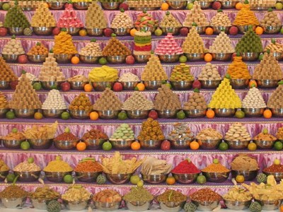 Celebrated by performing Govardhan pujan, where devotees make food offerings to the Lord.